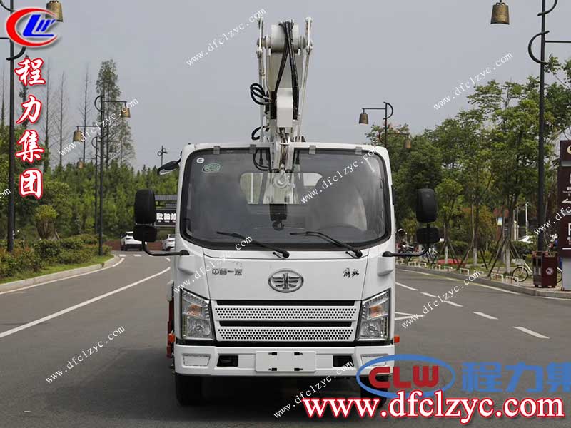 湖北程力解放V虎高空作業(yè)車采用解放底盤,國六排放標準,原廠空調(diào)、方向助力、電動玻璃,中控門鎖、650鋼絲胎、斷氣剎。改裝采用折疊式曲臂結(jié)構(gòu),作業(yè)臂為三節(jié)折疊式,工作斗和轉(zhuǎn)臺雙工作位,上下操作,電液閥控制,可360度回轉(zhuǎn),四液壓支腿,工作斗內(nèi)可控制發(fā)動機啟停,大臂帶卷揚吊鉤系統(tǒng),吊鉤吊重≤900kg,載人工作斗承重200公斤,鋼制工具箱和花紋防滑走臺板,不銹鋼圍欄,整車安全性高。